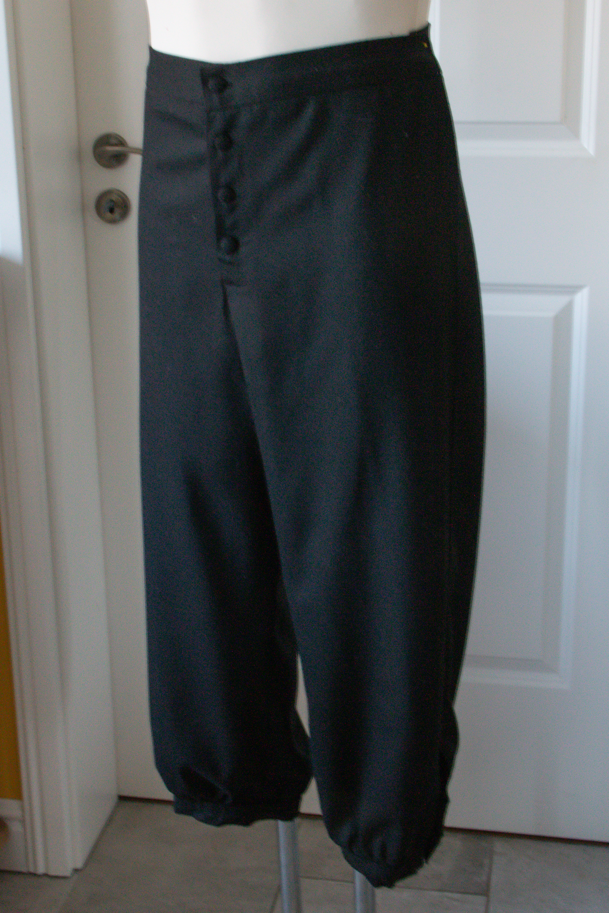 Die Hose ist typisch für die Zeit eine Kniebundhose. Sie ist insgesamt etwas schmaler geschnitten als zu früheren Zeiten. Sie wird vorne mit stoffbezogenen Knöpfen geschlossen. Auch an den Beinabschlüssen hat sie Knöpfe. Im Rücken ist eine Schnürung, mit der die Weite an der Taille angepasst werden kann.