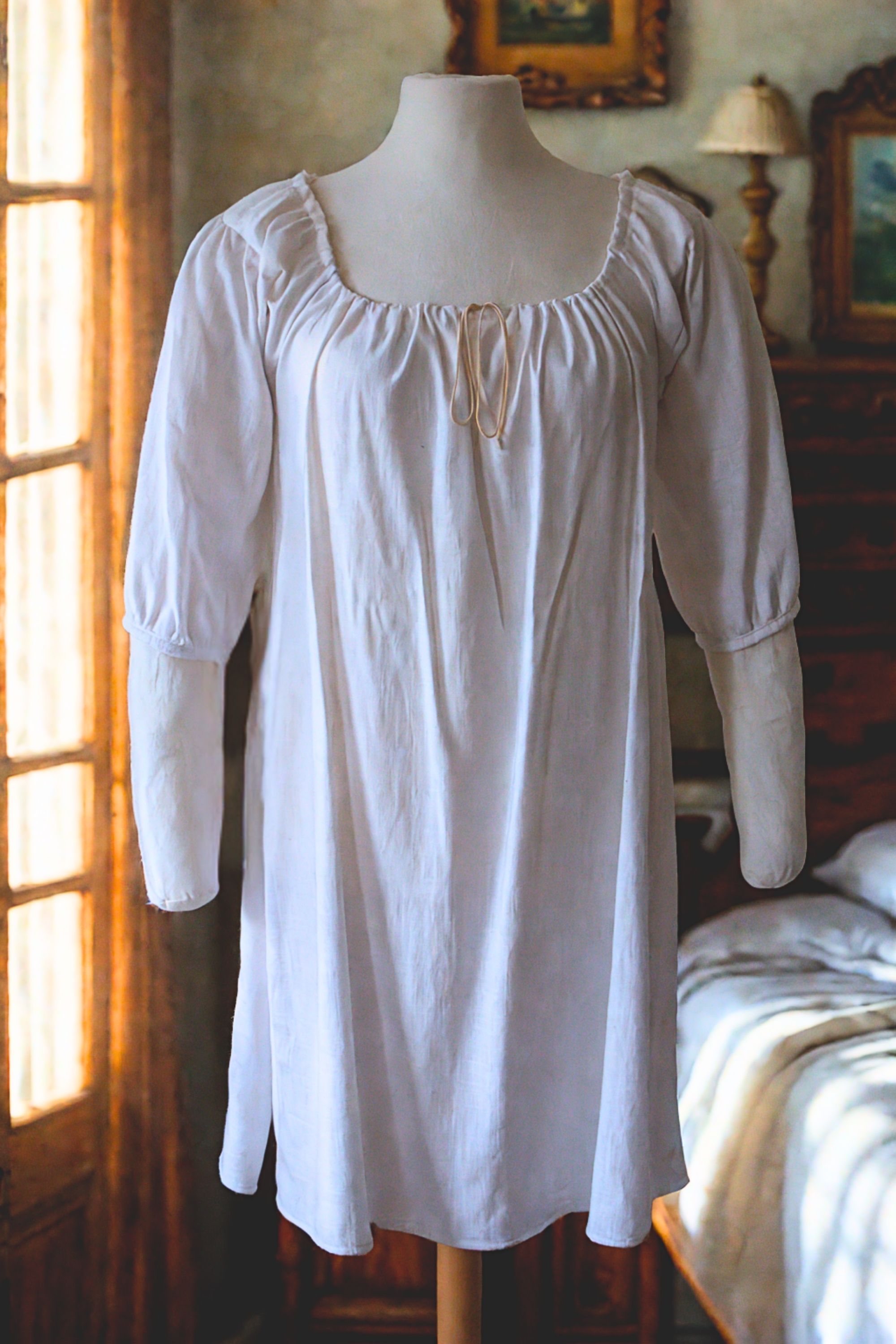 Die Chemise in mittlerer Länge mit halbem Arm ist die ideale Ergänzung zu deinem Rokoko-Kleid oder deinem Outlander-Kostüm. Du kannst sie aber auch im Alltag als Bluse nutzen. Kombiniert mit einem schicken Gürtel und schmaler Hose oder einem Rock hast du ein schickes Outfit für jeden Tag.